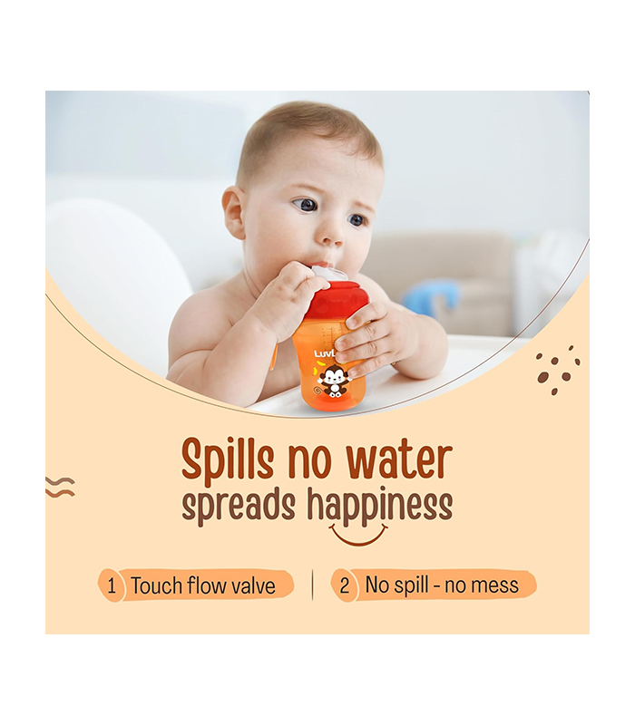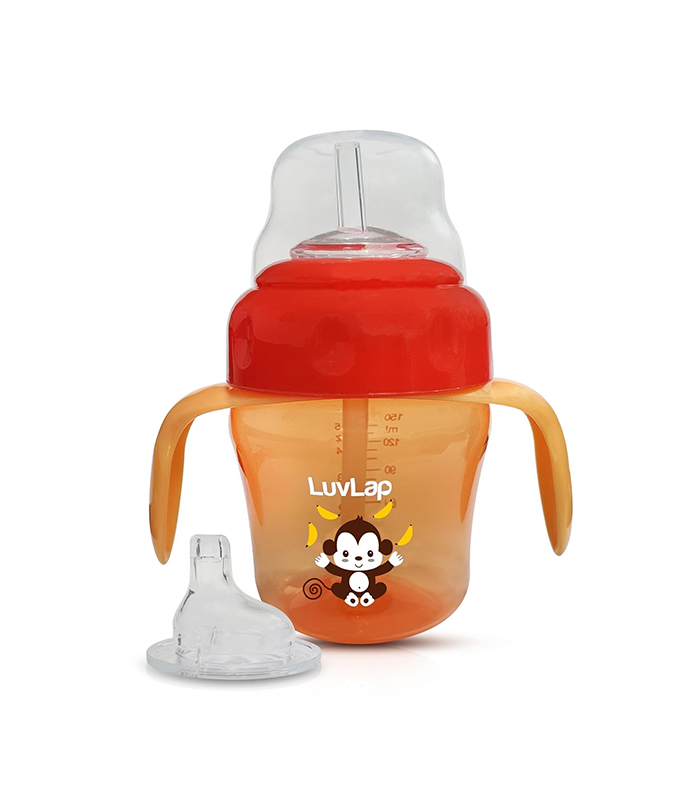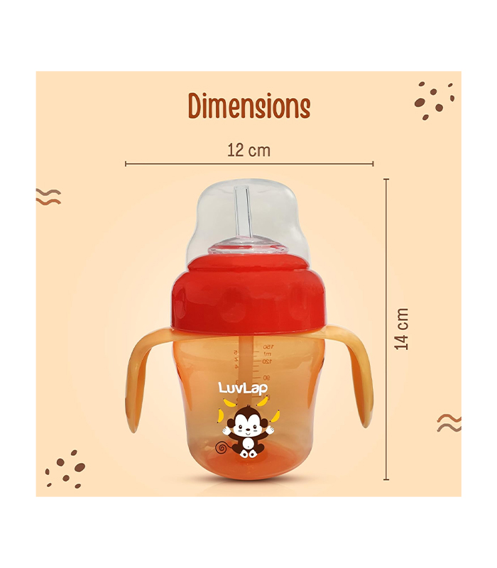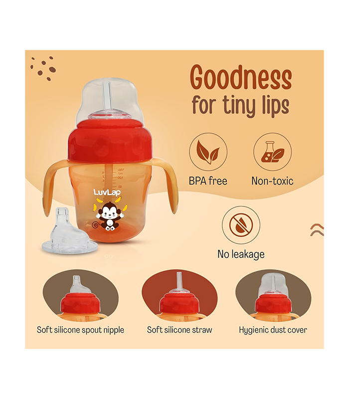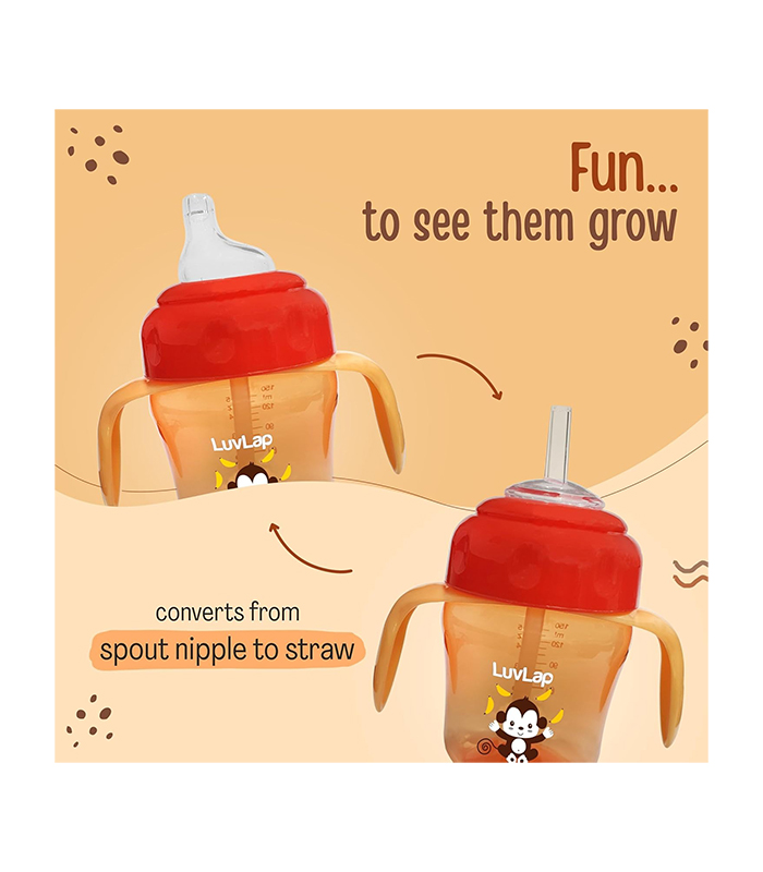 LuvLap Banana Time 150ml Anti Spill, Interchangeable Sipper / Sippy Cup with Soft Silicone Spout and Straw BPA Free, 6m+ (Orange)