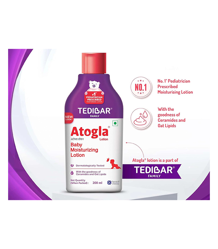 New Atogla Baby Moisturizing Lotion is a uniquely formulated lotion for sensitive skin with the goodness of Ceramide III and GLA (Gamma Linoleic Acid), that prevent and protect your baby’s skin from rashes and reduces irritation. Atogla lotion spreads easily on a larger body surface area and can be used from 6 months onwards or as recommended by doctors.