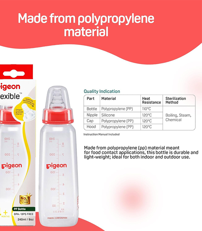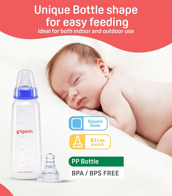 Pigeon Peristaltic Feeding Bottle is ideal for 4+ month babies and made from durable quality plastic