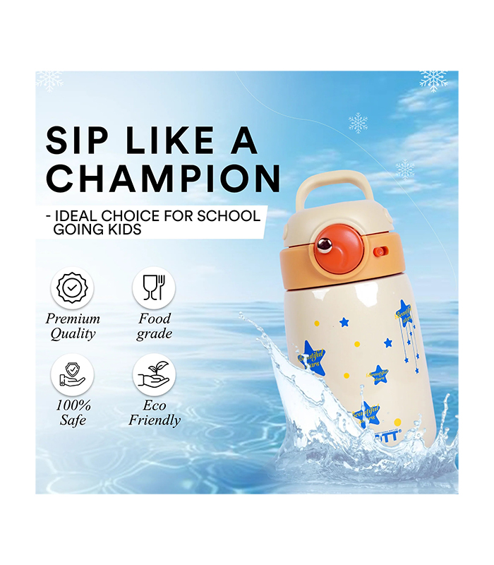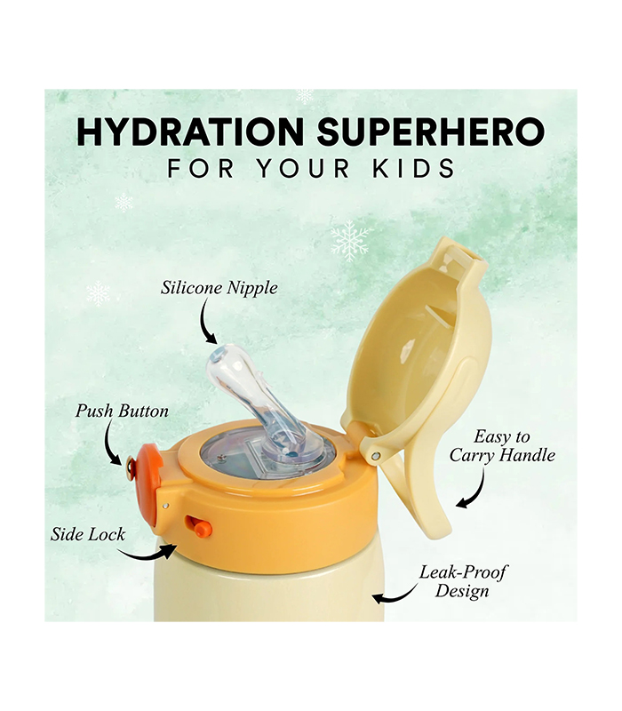 Probott Cool Kid 360ml Hot & Cold Sipper Bottle for Kid with Straw & Handle, Orange