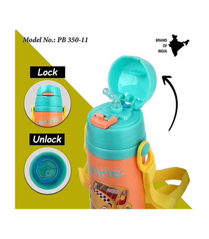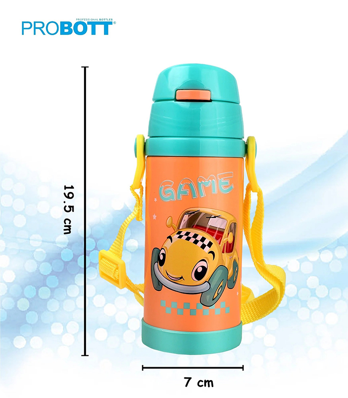 Probott Jerry 350ml Water Bottle with Straw for 3-5 yrs Old Kids | Stainless Steel Hot & Cold Sipper Bottle for Kid, Orange
