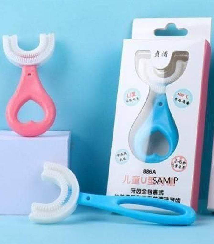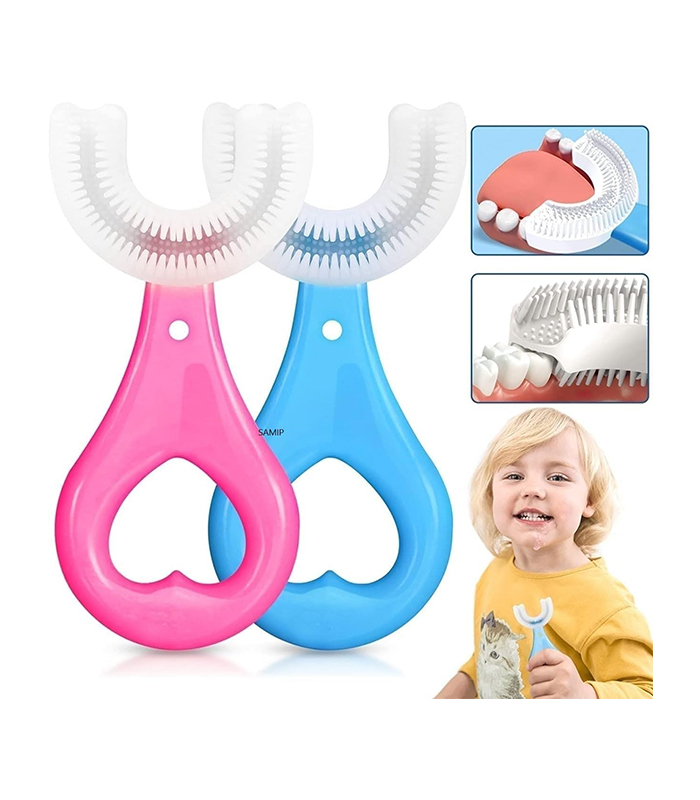 Toothbrush features unique u-shaped design for 360°Oral Teeth Cleaning. Different from traditional toothbrush, our toothbrush will not cause discomfort or gag reflex, which is a fun way to encourage good oral care habits early on.
